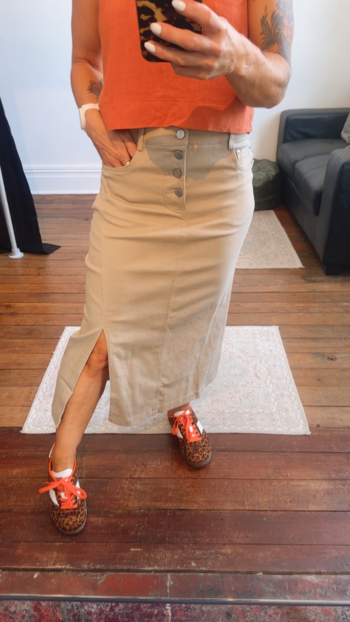 So Instyle Cotton Drill Skirt Aline Side Split Stretch Mocha