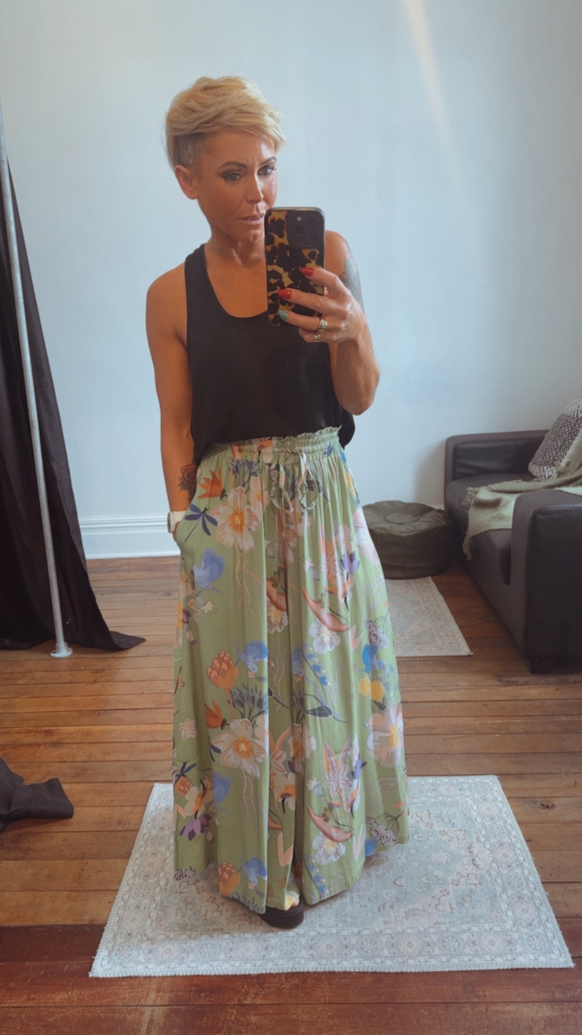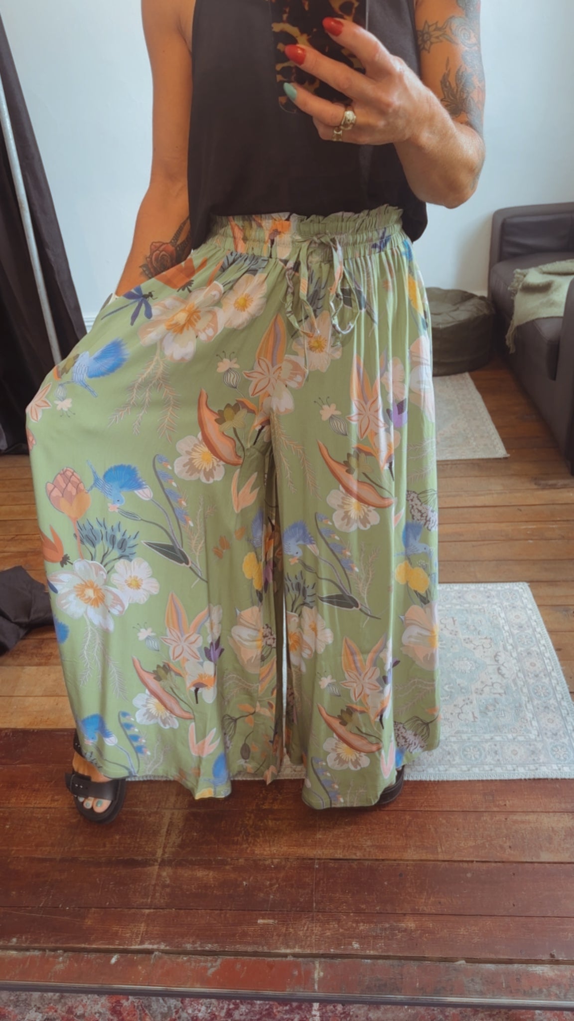 So Instyle Enchanted Forest Wide Leg Elastic Waist Flattering Pants Viscose