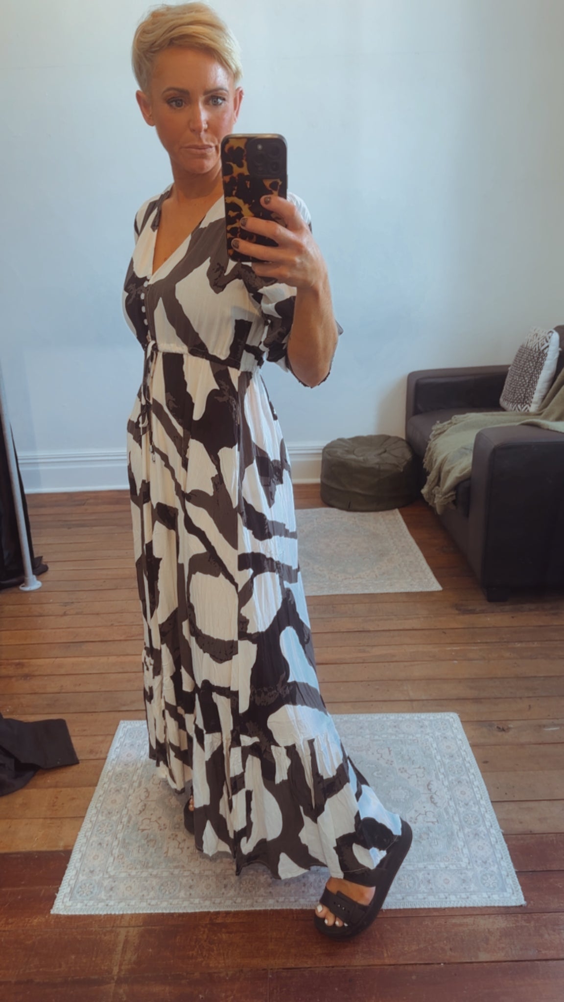So Instyle Water pattern 3/4 sleeve 2 tier viscose Linen Selma maxi dress