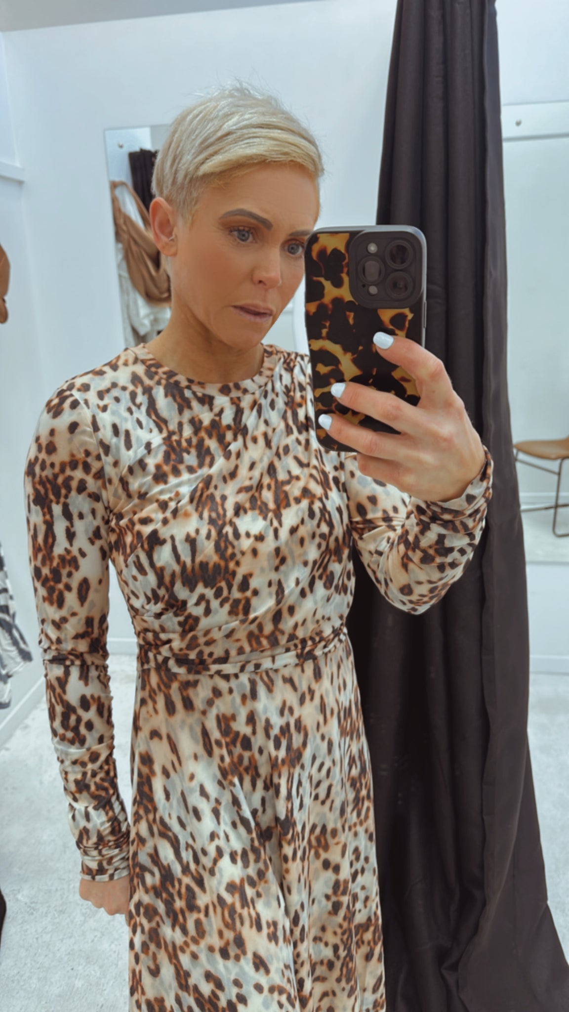Wrap front Dalmatian print long sleeve dress