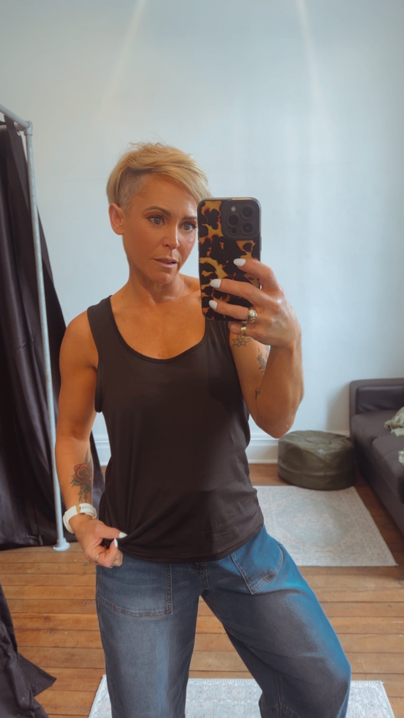Basic black razor back singlet