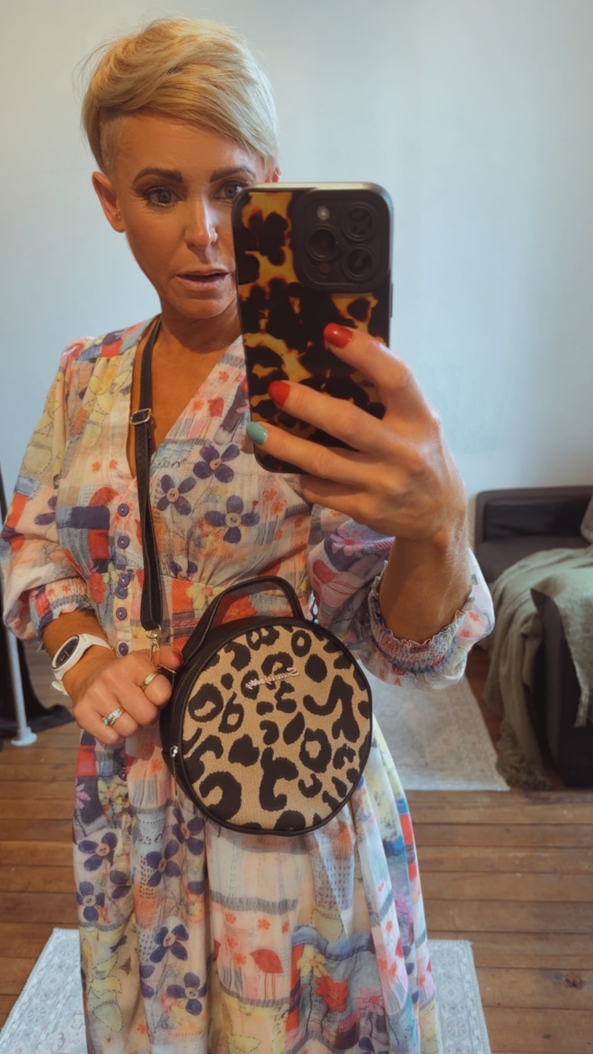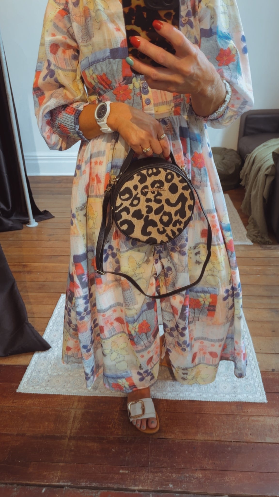 Black Leopard Circle Bag