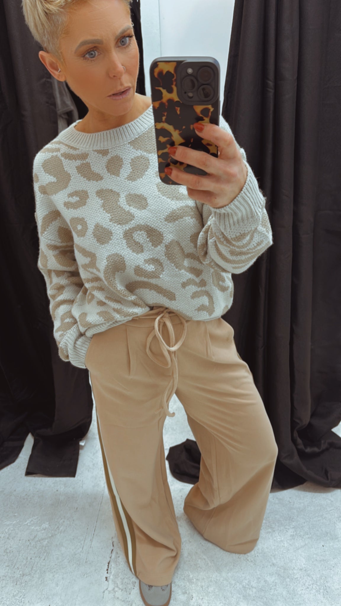 Refuge side stripe wide leg trousers beige