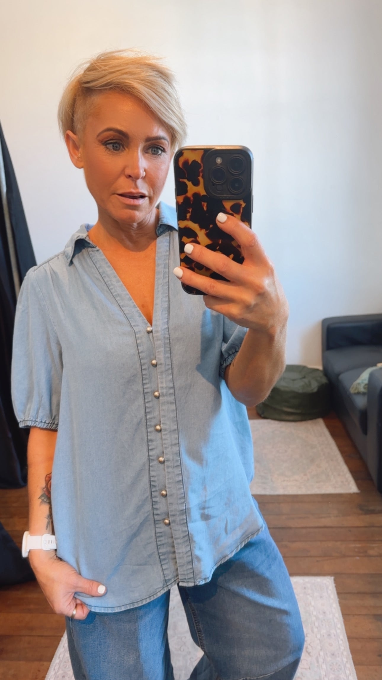 Tencel Denim Brass Button Through Shirt